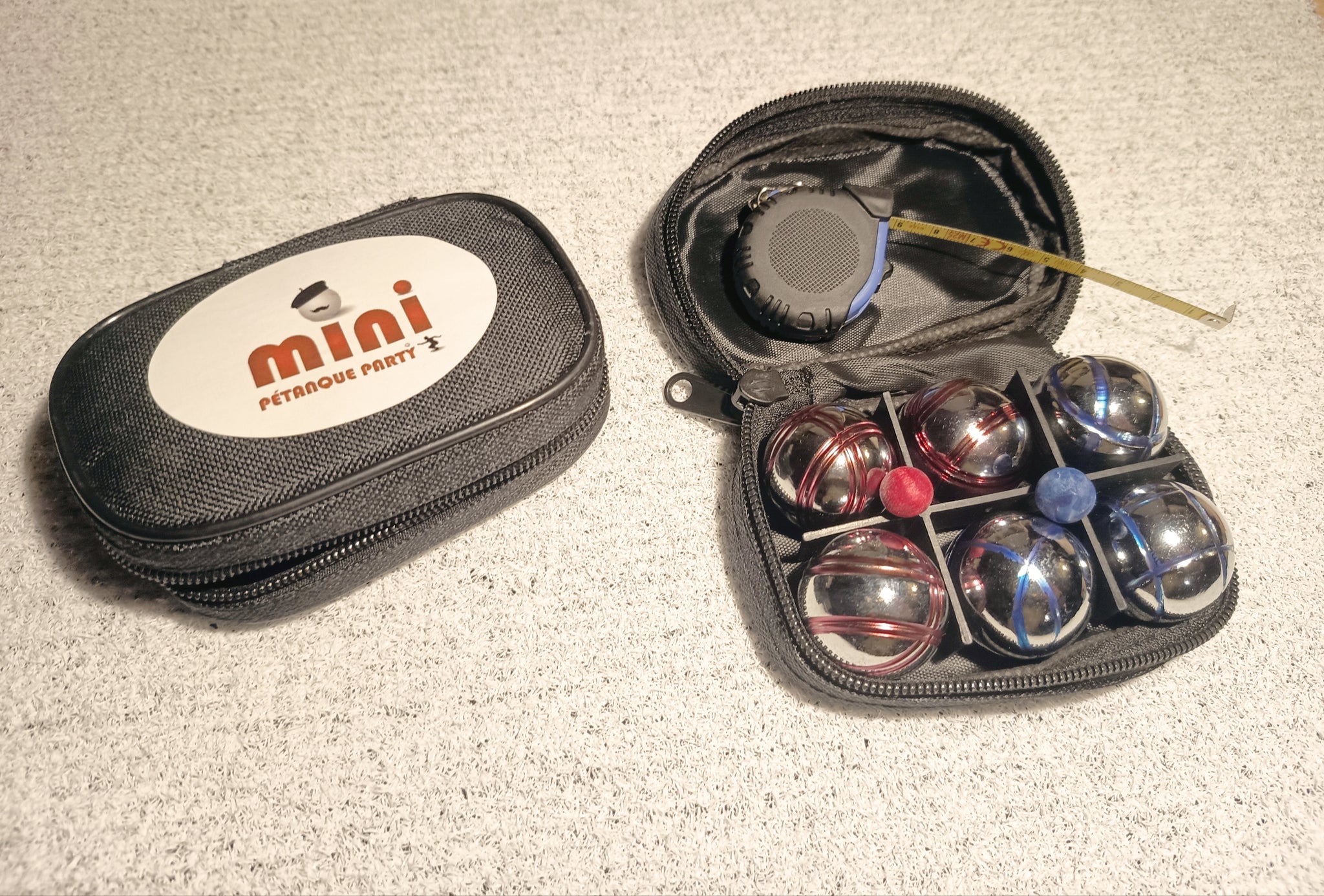 + 2 sacoches de 6 MINI Boules + 1 MINI ⭕️ de Jeu + 1 tapis synthétique 7 mm Bleu, Blanc ou Rouge + 1 fronton marquoir de score stop MINI boules + 1 revêtement lino protecteur table anti-bruit & anti-vibration + 1 MINI Mètre porte clefs...